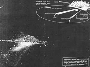 The claim is made on the site that "The pictures clearly show a vast wide city floating eeriely in the blackness of space" and later that the "photograph shows a radiant flash at the edge of the Universe, filled with images of what appear to be buildings."