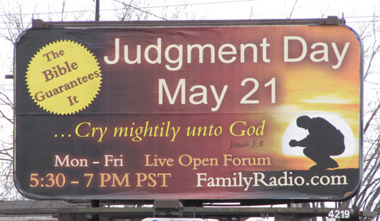 As of writing this article, there are a little over two weeks to go until Judgement* Day - the day when Harold Camping's latest End-of-the-World forecast[1] is judged an abysmal failure.