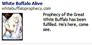 Lately with some regularity, one of the ads which Facebook chooses to present for my entertainment is promoting a so-called Great White Buffalo Prophecy.