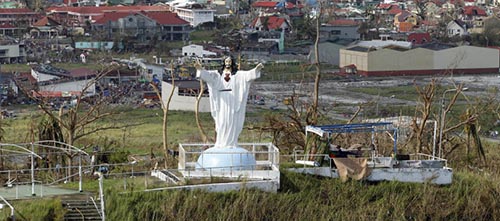 ** Similarly, it was regarded as a miracle four years ago when Typhoon Hayan hit the Philippines, and a statue of Jesus survived "casting a protective gaze over the coastal town of Tanauan". Protective gaze, my ass! Pictures show the statue standing amidst the wreckage.